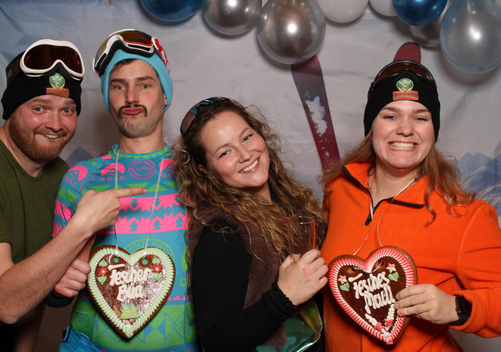 Ob schicke Goldglitzerwand, Aprés Ski, verspielte Blumenmotive oder klassischer Weißhintergrund – wähle den passenden Look für Dein Event. Dazu gibt’s eine große Auswahl an lustigen Requisiten wie Hüte, Brillen, Schilder und mehr!